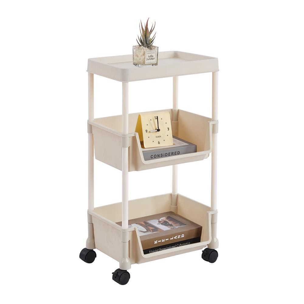 Πλαστικό τρόλεϊ - καλάθι 3 επιπέδων από ανθεκτικό PP και σωλήνες PVC, με ρόδες για εύκολη μετακίνηση. Ιδανικό για αποθήκευση μικροαντικειμένων σε κουζίνα, μπάνιο, γραφείο ή επαγγελματικούς χώρους. Ο μοντέρνος σχεδιασμός του προσφέρει πρακτικότητα και καθαρή αισθητική σε κάθε περιβάλλον. Διαστάσεις προϊόντος: Υ63x34x25εκ., συσκευασίας: 36×27×22 εκ. Βάρος: 1,20 κιλά.