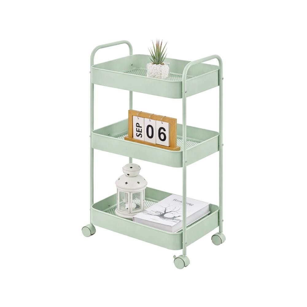 Τρόλεϊ- καλάθι Υ70.5x43x30εκ. μεταλλικό με 3 θήκες αποθήκευσης πράσινο