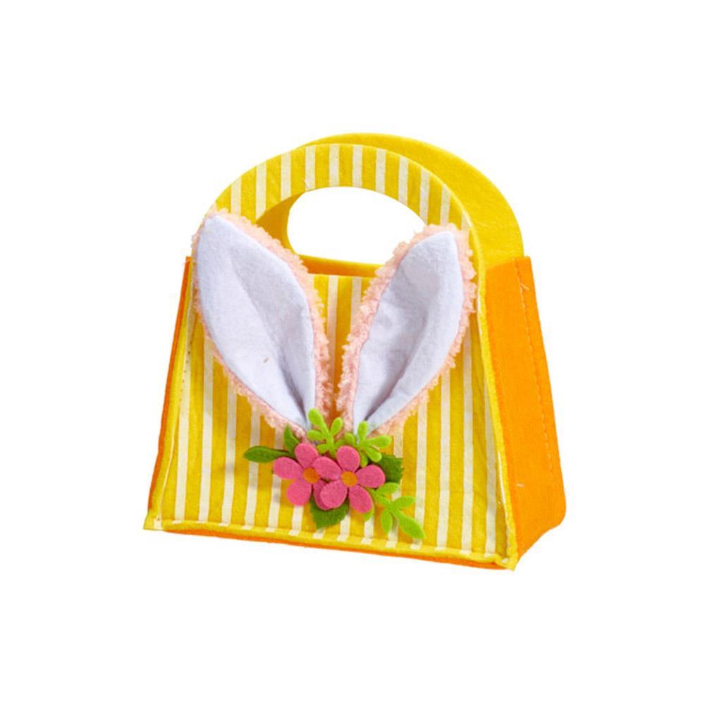 Τσάντα από τσόχα με διακοσμητικά αυτιά λαγού, κατάλληλη για πασχαλινή χρήση, μικρά δώρα ή διακοσμητικές συνθέσεις. Η μαλακή υφή και το παιχνιδιάρικο σχέδιο την καθιστούν ιδανική για εποχιακή διακόσμηση και δημιουργικές εφαρμογές σε εσωτερικούς χώρους.