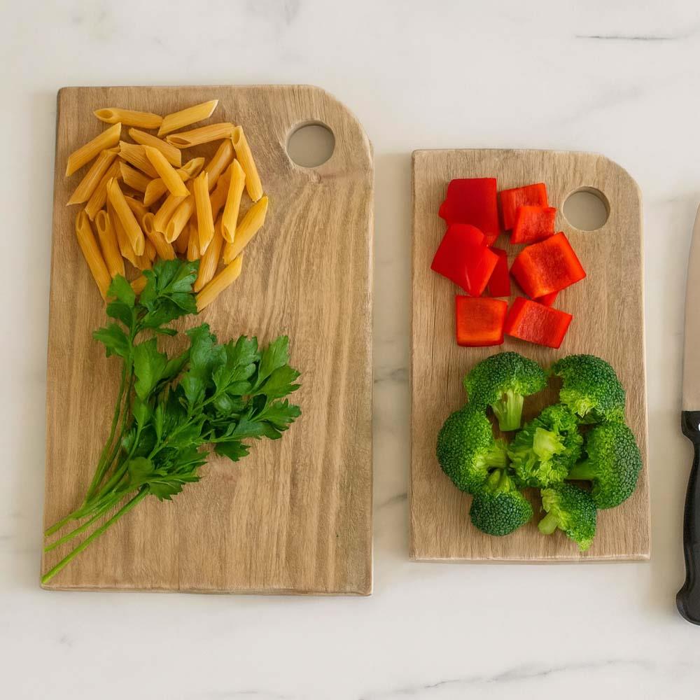 Ξύλα κοπής σετ 2 ΤΜΧ Nextdeco, είναι ένα πρακτικό και κομψό σύνολο για την κουζίνα σας. Το σετ περιλαμβάνει δύο διαφορετικά μεγέθη, κατάλληλα για την προετοιμασία φαγητών, από το κόψιμο λαχανικών μέχρι την επεξεργασία κρεάτων. Υλικό: Mahoni
