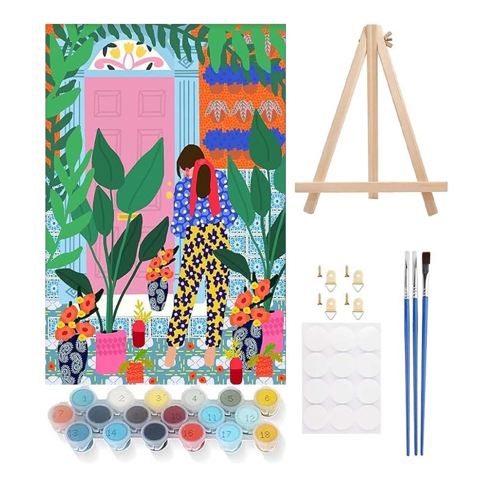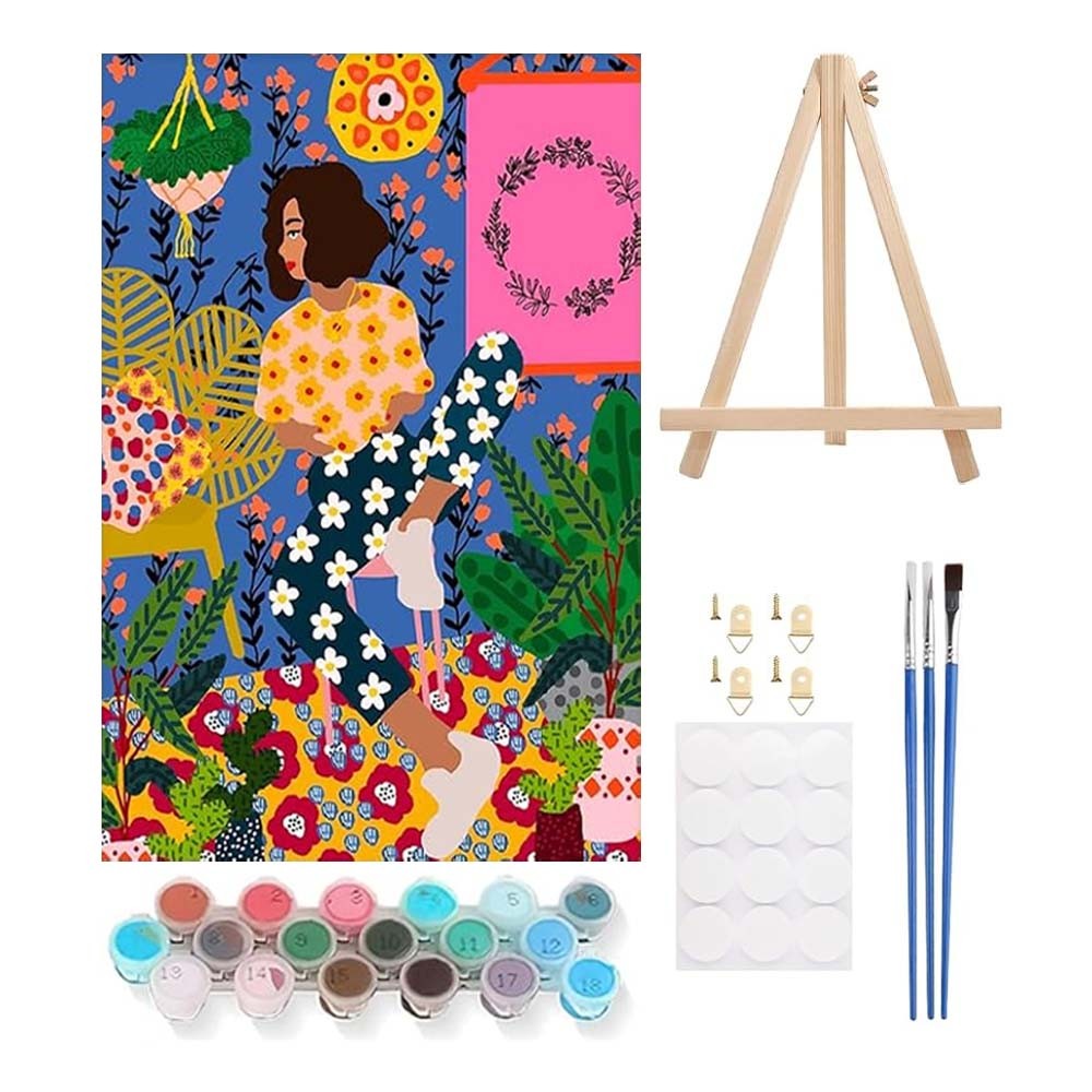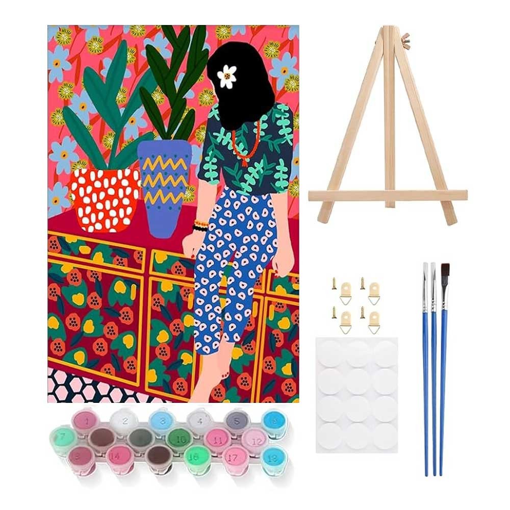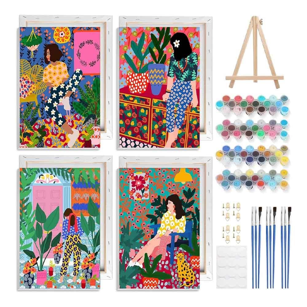Διακοσμητικό σετ ζωγραφικής με αριθμούς για παιδιά και ενήλικες με θέμα "γυναίκες σε εσωτερικούς χώρους με φυτά", ιδανικό για δημιουργική απασχόληση και μοντέρνα διακόσμηση τοίχου.